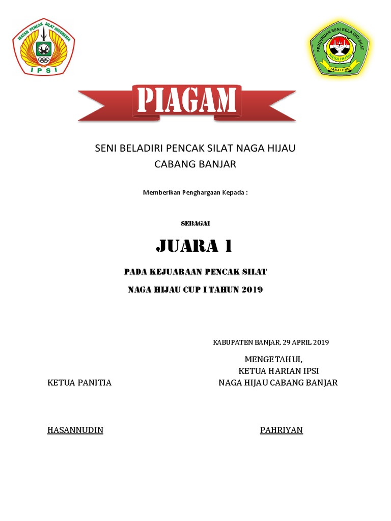 Related : Contoh Piagam Penghargaan Pencak Silat : Pujian atau bentuk penghargaan yang lain kepada peserta;.