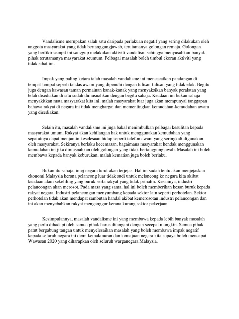 Titas Faktor Vandalisme Studocu from d20ohkaloyme4g.cloudfront.net We did not find results for: Maybe you would like to learn more about one of these? Check spelling or type a new query. Punca vandalisme dalam kalangan remaja.